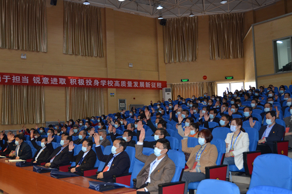 校工会主席孟祥亭报告了大会筹备情况,对大会代表的构成、替补增补工作以及相关制度的修订和提案征集等情况进行了通报和说明。与会代表审议通过了大会主席团名单、大会秘书长名单和大会议程。