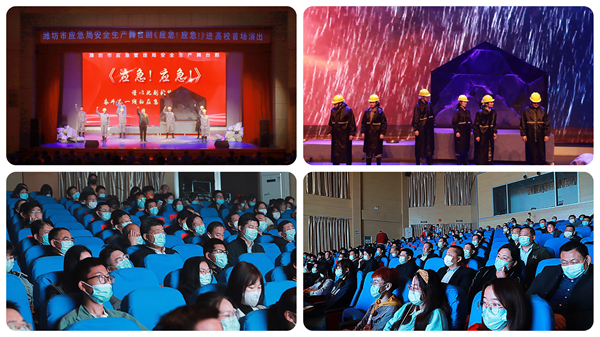 本网讯 4月8日,安全生产舞台剧《应急!应急!》进高校首场演出在学校图书馆报告厅拉开序幕。学校党委副书记王清明、潍坊团市委书记赵中国、潍坊市应急管理局局长李永光、潍坊市消防救援支队支队长张少见等领导,团市委、市区应急局、市安委会和驻潍高校团委等有关人员,学校学生工作处、实验室与设备管理处、总务处、保卫处、团委和各学院实验实训中心、团总支师生代表,近300人现场观看了演出。