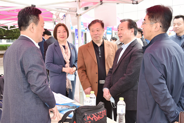 4月10日,“2021年青岛招才引智名校行(潍坊站)”招聘会在致远楼内广场进行。李东与前来招聘的企业亲切交流,询问了几家公司的基本情况、招聘岗位及其薪资待遇,同时与青岛招才引智名校行发起方和主办方青岛市北区人力资源和社会保障服务中心主任李伟佳进行了深入交流,详细了解了青岛招才引智名校行的组织情况和实施效果。本次招聘会,共有42家单位参加,绝大部分为来自青岛的企业。现场毕业生与用人单位交流达1200余人次,达成初步就业意向390余人次。