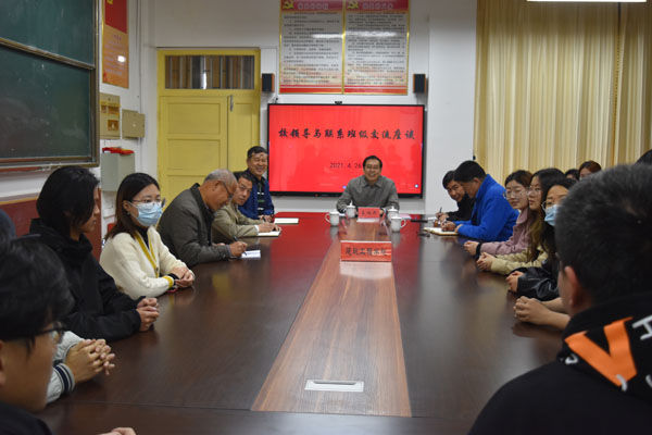 本网讯 4月26日,副校长王旭升到建筑工程学院与联系班级学生进行座谈交流,进一步落实党史学习教育“我为群众办实事”实践活动;学校总务处、保卫处负责同志陪同并现场答复学生提出的问题,就进一步提升为师生服务意识和服务质量做了解读。
