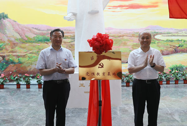 活动中,李东与张建伟共同为潍坊学院党性教育基地揭牌。