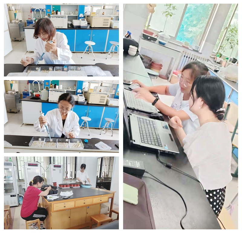 7月26日,记者走进位于3号教学楼的生物学院实验室,依然能见到老师们忙碌的身影。路艳老师和封佳丽老师正在讨论“MejA诱导下朱砂根三帖皂苷生物调控研究”课题相关文献资料,探讨关于三萜皂苷关键酶基因克隆的研究内容和实验方案。刘春香、高秀清两位老师正在进行小麦抗生素抗性浓度的筛选和前期实验的PCR检测。今年6月份,刘春香团队和西北农林科技大学老师签订了横向科研项目做小麦转基因,今天的实验是实验项目的一部分。“萝卜品质提升创新”团队的李媛媛老师和韩敏老师正在开展萝卜肉质根色泽关键基因的功能研究。两位老师长期致力于萝卜含糖量、辣味等品质调控机理研究,以期为分子标记辅助选育优质萝卜新品种提供分子依据。该课题经过近一年的研究已有了初步结果,目前正进入攻坚阶段,该团队正利用假期时间抓紧完善试验,争取早日实现突破。