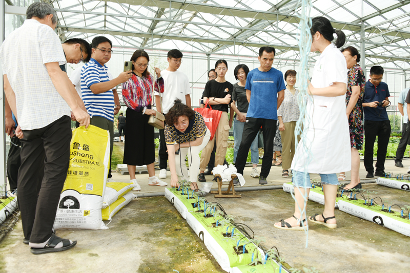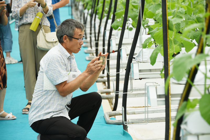 他们边听边记边问,详细了解相关技术以及数据,并与企业科研人员互加微信,建立沟通学习的渠道。他们还用手机拍照、录视频,留作学习研究资料。从温室大棚,到车间厂房,即使是温室大棚内高温高湿的环境,也丝毫没有消减教师们学习的热情。