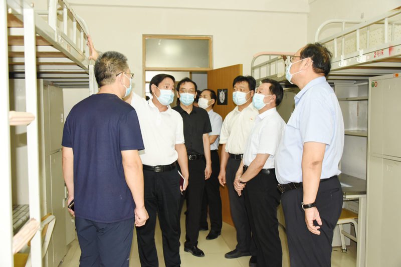 本网讯 8月28日,我校省外老生将开学报到。8月27日,学校领导李东、冯滨鲁、王清明、王旭升,到弘德书院、学生公寓、餐厅、继续教育学院、临时核酸检测点等,对开学各项准备工作进行了检查。