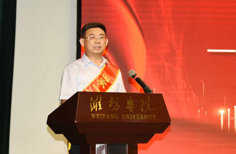 李东指出,正是一代代潍院人和衷共济、艰苦奋斗、追求卓越,才接续成就了潍坊学院的不断发展壮大。在我们老师身上,始终坚守着立德树人的初心使命,集中体现了爱岗敬业的职业操守,充分彰显了为人师表的桃李风范,生动诠释了无私奉献的崇高境界。学校70年发展取得的成就,是广大教职员工用辛勤汗水和智慧力量浇铸而成的。这份沉甸甸的荣耀属于广大教职员工,我们要为老师们点赞、致敬、鼓掌。