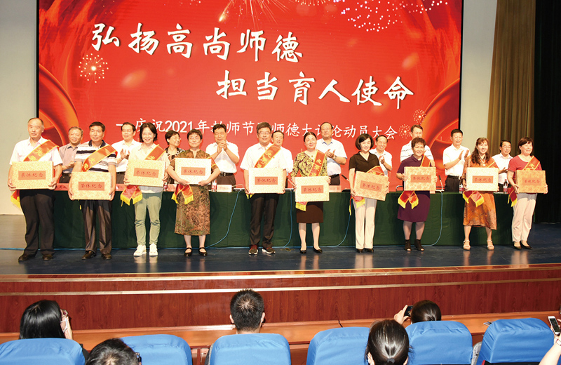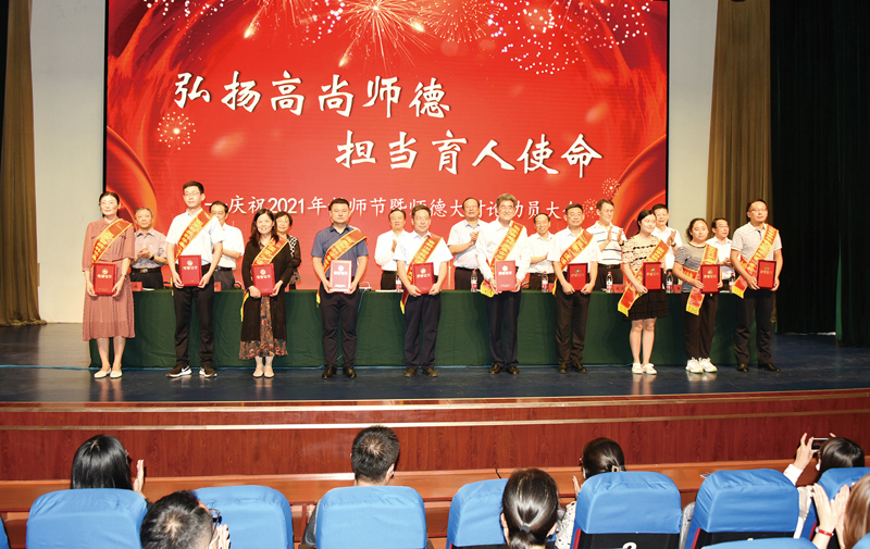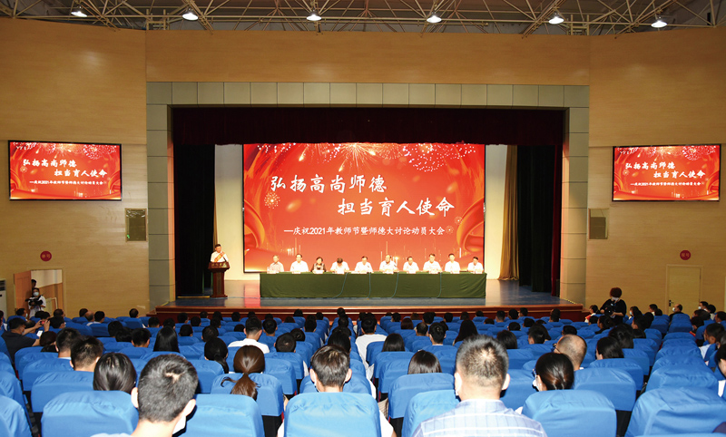 本网讯 9月9日,学校召开庆祝第37个教师节暨师德大讨论动员大会,举行新进教师入职宣誓和教职工荣休仪式,表彰先进典型,启动全校师德大讨论活动。党委书记李东作讲话,党委副书记、校长冯滨鲁主持大会,党委副书记王清明宣读荣休教师以及先进典型名单,副校长赵光强对师德大讨论活动作动员部署。党委委员丁子信、马茜华、王旭升、王建新、李连成、单振涛出席大会。