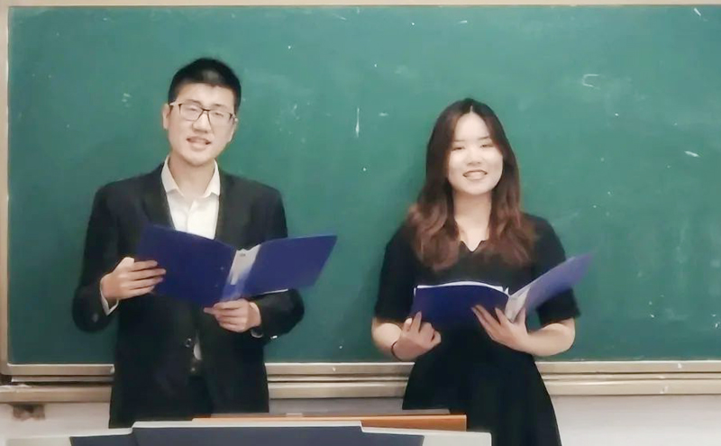 本次大赛由文学院和传媒学院联合承办。大赛分为初赛、复赛和决赛。共有9支代表队参加了决赛。决赛分为规范汉字书写、短文朗诵、即兴演讲三个项目。短文朗诵比赛中,选手们按照事先抽取顺序依次上场。来自文学院的陈卓和刘畅同学共同带来的是《七月赞歌》,伴随着《建党伟业》视频的播放,两位同学的朗诵抑郁顿挫、真情流露,赢得了在座所有人的热烈掌声。在限时三分钟的即兴演讲活动中,各位选手的选题各不相同,既有疫情防控主题,也有写规范字和诵百年伟业的主题。