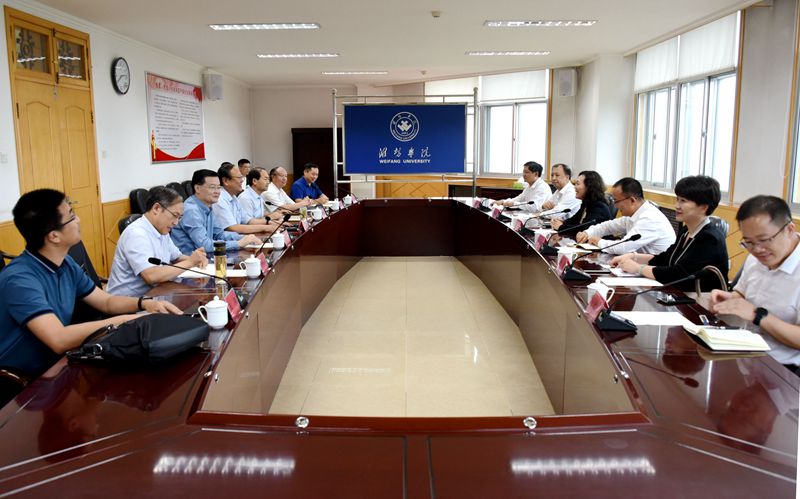 冯滨鲁对陈颖一行的到来表示欢迎。他简要介绍了学校的基本情况,尤其是学校近年来在学生培养、招生就业、科学研究、服务地方等方面开展的工作和取得的成绩。他表示,学校高度重视与地方经济社会发展深度对接,充分发挥学校人才集聚、科技创新优势,相继成立了潍柴产业学院、歌尔科技产业学院、潍坊农业农村现代化研究院和潍坊乡村振兴学院,积极推动校地合作和产学研融合,为潍坊高质量发展提供人才支撑和智力支持。希望双方有机会在学校发展、金融服务等多方面建立联系,加强合作。