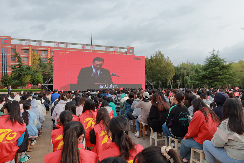 大会通过潍坊广播电视台进行直播,同时在潍坊微直播、潍坊学院官方微信、微博、抖音等平台线上直播,并在主校区运动场、安顺校区广场和各教学楼多媒体教室设立分会场,全校师生员工和广大校友同步收看庆祝大会盛况。