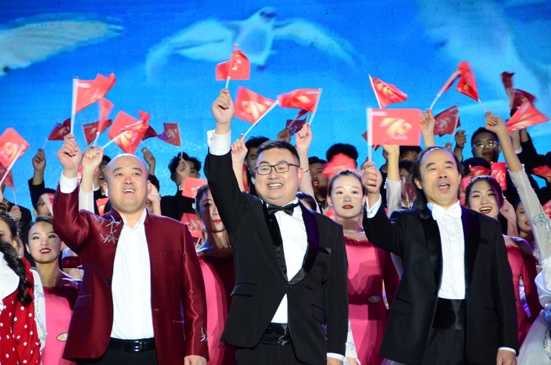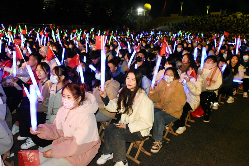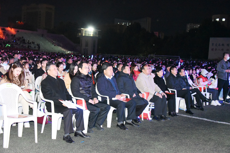 本网讯 唱响激情岁月,奏出华彩乐章。10月16日晚,潍坊学院建校70周年校庆文艺晚会在学校体育场内华丽上演。绚丽多彩的舞美设计,耀眼璀璨的灯光,将晚会现场装点得光彩夺目、激情四射。学校党委书记李东,党委副书记、校长冯滨鲁,党委副书记王清明,党委委员丁子信、马茜华、王旭升、王建新、李连成、单振涛,和诸多校友以及2万多师生,欢聚一堂,共同观看晚会,同庆潍坊学院70周年华诞,共祝潍院的明天更加辉煌。