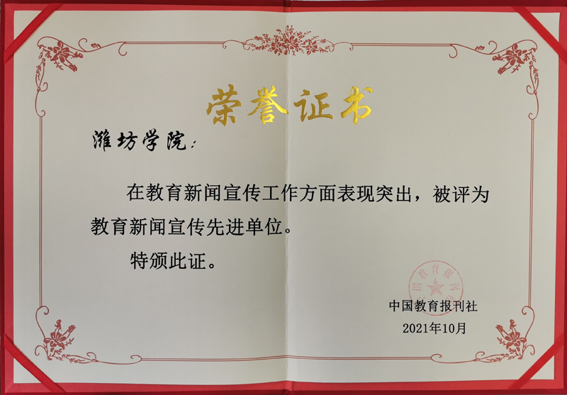 本网讯 10月27日至29日,中国教育报刊社2021年山东新闻宣传通联工作会议在威海举行,我校在2021年教育新闻宣传工作方面表现突出,被评为“教育新闻宣传先进单位”,党委宣传部李璐璐获“教育新闻宣传先进个人”称号。
