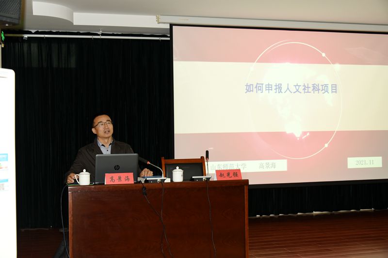 高景海从如何组织项目申报,如何做好科研管理服务,做有组织的科研,营造良好的学术氛围等各方面进行了讲解。报告深入浅出,内涵丰富、分析透彻,对教师人文社科研究能力的提升具有很好的指导意义。