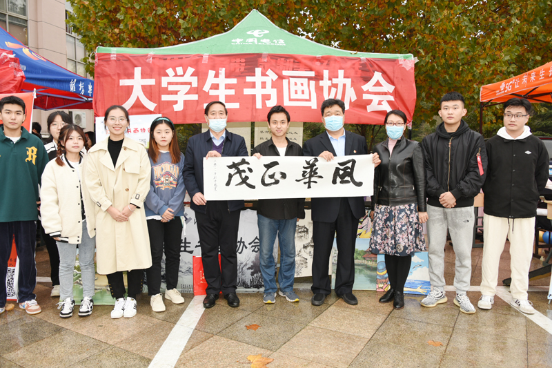 纳新现场,各社团结合自身特点,“争奇斗艳”,纷纷进行了现场表演和优秀作品展示,用最特别的方式吸引新社员的加入。大学生摄影协会用优秀的摄影作品,吸引同学们驻足观赏。大学生科技创新协会的获奖作品和获奖证书、大学生魔方社用舞动的手指展示的六色变换、大学生街舞协会的动感舞姿、花艺手工环保协会的精美手工等,都吸引着同学们跃跃欲试、积极互动。大学生书画协会现场进行书画展示,尽情挥洒着笔墨,会员刘彦龙同学的现场书法作品“风华正茂”,受到了王清明书记的赞扬。