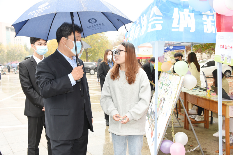 活动现场,王清明与每一位社团负责人深入交流,询问社团开展的日常活动和纳新情况,并结合不同类型的社团给出指导性的建议。同时表达了对同学们在纳新过程中要时刻注意疫情防护安全。在交流过程中,王清明指出,学生社团要在学校党委的领导和团委的具体指导下,规范健康发展,坚持以初心打造社团特色活动,用创新拓展社团舞台,为全校同学提供更加丰富多彩的社团文化活动。