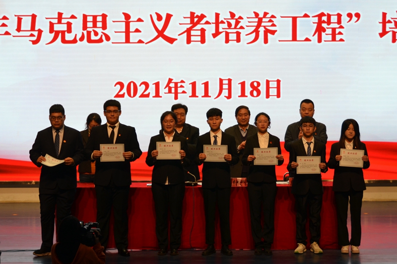 本网讯 11月18日,我校2021-2022学年“青年马克思主义者培养工程”培训班开班暨首场报告会在图书馆报告厅举行。本次活动特邀学校党委副书记王清明担任主讲嘉宾。学生工作处处长、团委相关负责同志参加活动。本次活动由团委负责同志主持。2021级优秀团员共234人参加培训。