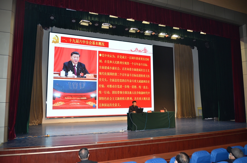 本网讯 12月16日,全校副处级干部党的十九届六中全会精神专题学习班开班仪式在图书馆报告厅举行,校党委副书记王清明主持仪式并作动员讲话,特邀马克思主义学院吕学山教授进行党的十九届六中全会精神宣讲。全体副处级干部参加活动。