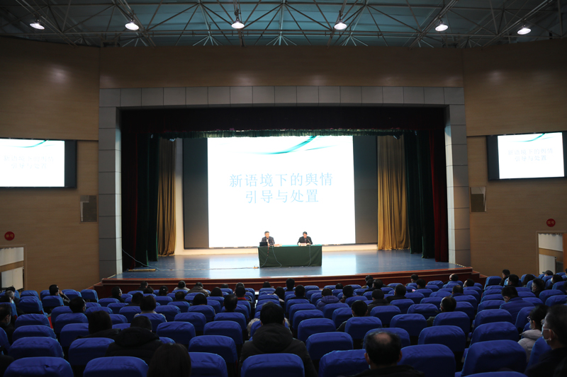 本网讯 12月23日,学校在图书馆报告厅举行网络舆情工作专题培训会。潍坊市委网信办网络宣传与网评科科长、一级主任科员,市互联网舆情中心副主任王福军作辅导报告。学校党委委员、宣传部部长单振涛主持报告会。