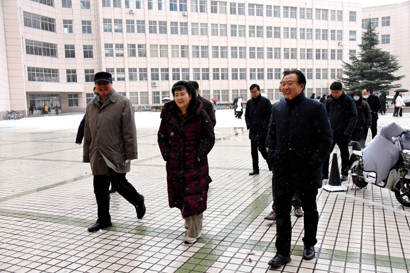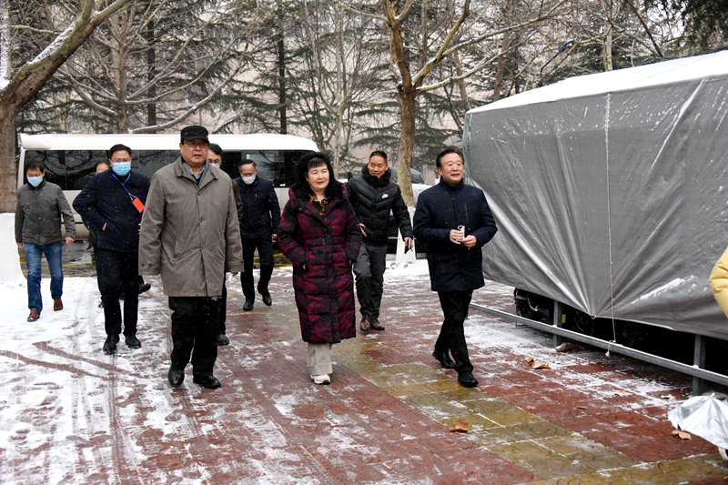 本网讯 12月24日,迎着漫天飞舞的雪花,潍坊市副市长李平带领相关部门负责同志来校检查2022年硕士研究生招生考试考前准备工作,听取学校准备情况汇报,并进行实地查看。校党委书记李东,校长冯滨鲁,副校长赵光强陪同检查。