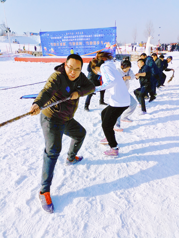 本网讯 1月16日,由山东省体育局主办的山东省第五届冬季全民健身运动会雪地拔河和雪地托球跑比赛,在泰安市徂徕山滑雪场举办。潍坊市派出以我校体育学院教师为主的强势阵容参赛,经过激烈角逐,取得优异成绩。