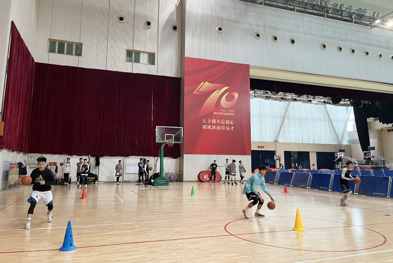 记者看到,足球场上,女足教练陈茂战带领队员们刚做完热身,马上转入球性训练;男足在高欢老师的带领下,小伙子们正在寒冬下进行着传球练习;风雨球场内,田径队教练张恒亮、王宁正带领学生在做身体素质训练;体育馆里,男篮的小伙子们正在美女教练王雨的带领下分组对抗训练。