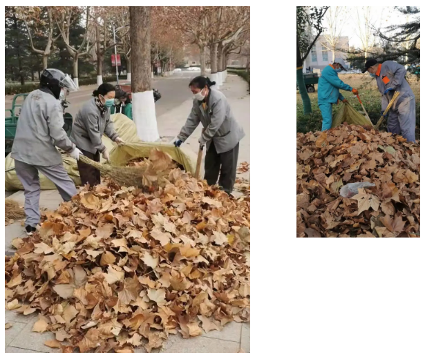 渐入深冬,潍院里的树叶都黄了、枯了,风吹雨打后都哗啦啦的铺在了地上,这厚厚的落叶大大增加了保洁叔叔阿姨的工作量,鼓吹、清扫、堆集、装袋、搬运,校园内的洁净环境的背后,都离不开这看似不起眼的每一步。
