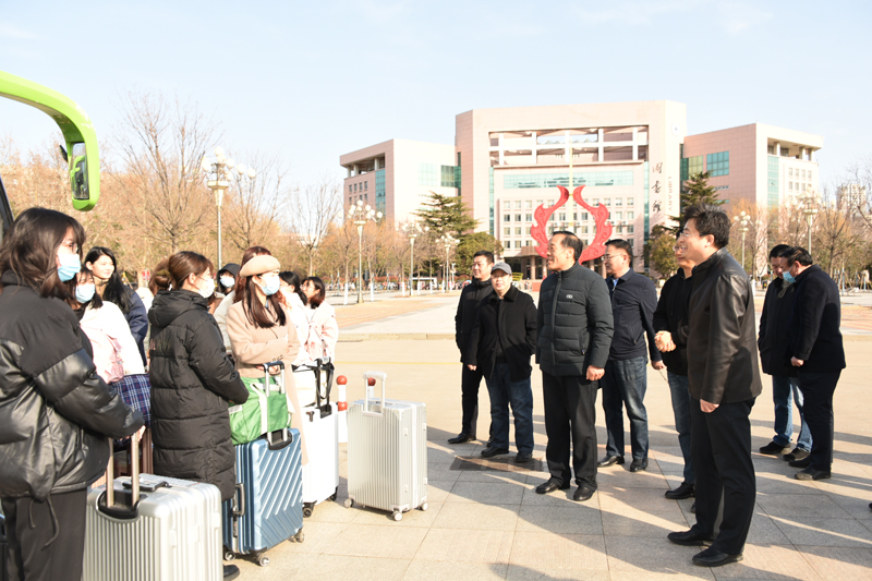 本网讯 3月1日上午,我校第十一批实习支教学生和带队老师齐聚行政楼北广场,启程去实习支教学校报到,正式开启一个学期的实习支教工作。副校长朱猷武为支教学生送行,教务处、相关学院负责同志以及辅导员老师参加了送行活动。