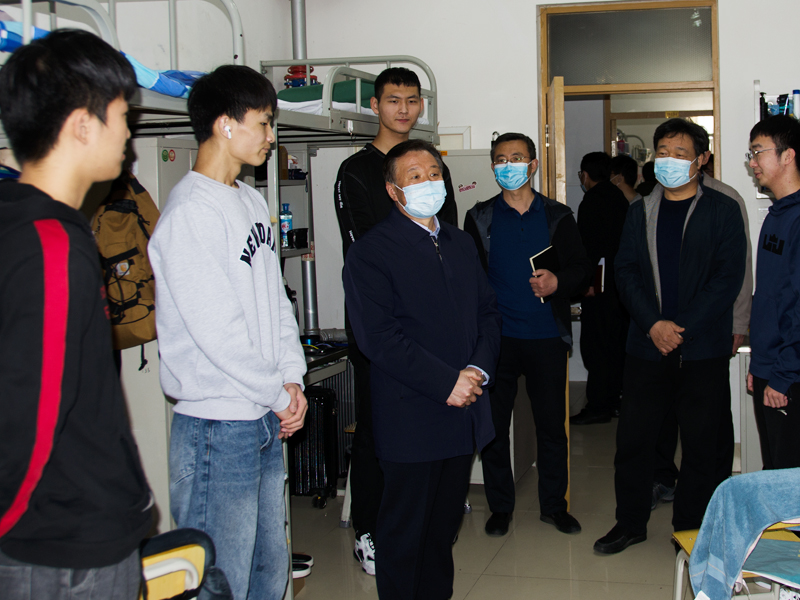 在人合楼,李东一行与辅导员和学工干部进行了座谈。在5号学生公寓、弘德书院,李东同辅导员深入交流,实地查看驻守的辅导员和学生的工作学习生活情况。每到一处,李东都详细询问老师们住宿条件是否满意、伙食是否可口,询问学生们饭菜价格是否合理、网课学习是否顺畅、有什么需要解决的问题和困难。