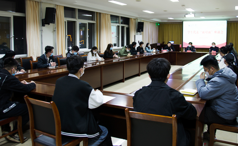 会上,学生代表围绕当前学校疫情防控工作,结合近期学校封闭管理形势下同学们的学习生活状况,从学习条件、餐厅就餐、考研就业、课余活动等方面表达了同学们的需求和困难。王清明副书记仔细记录着学生代表们反映的问题,并针对有关问题耐心解答,及时作出回复。