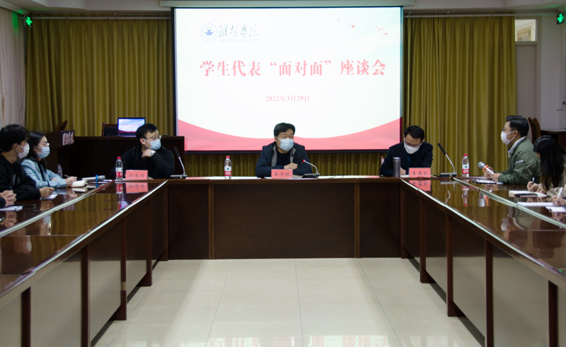 学校团委相关负责同志表示,本次座谈会是在学校党委召开专题研究疫情防控工作会议后特别召开的一次学生座谈会,切实实现了“师生零距离、诉求零门槛、反馈零时差”,为后期学校疫情防控工作的进一步细化提供了参考建议,为筑牢抗疫“防护墙”、织密抗疫“防护网”奠定了坚实基础。面对疫情防控的严峻形势,学校领导与老师们坚守在疫情防控第一线,全校同学众志成城,配合学校各项疫情防控要求,共同守护潍院,期盼春暖花开。