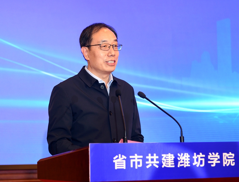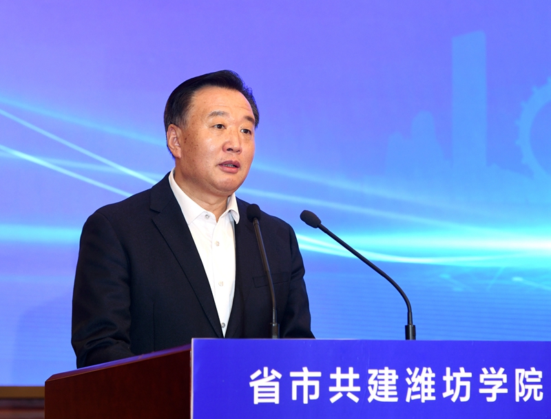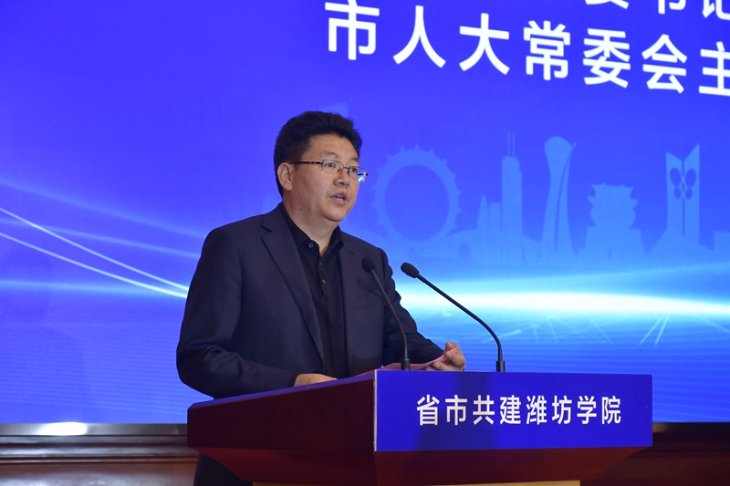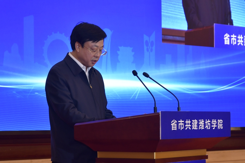 冯继康在讲话时指出,省委、省政府高度重视高等教育事业改革发展,全面启动高水平大学和高水平学科建设,推动山东由高等教育大省向高等教育强省转变。此次省市共建潍坊学院,是省教育厅贯彻落实省委、省政府工作要求的具体体现,也是潍坊市与潍坊学院校地合作、校城融合的一次深化和升级,体现了潍坊市委、市政府贯彻落实党中央决策部署和省委工作要求,推动高等教育内涵式高质量发展的强烈责任担当、深厚教育情怀和务实工作作风。通过省市共建,潍坊市委、市政府将潍坊学院纳入全市经济社会发展大局,在政策、资金、土地、人才等方面给予学校大力支持,必将为潍坊学院高质量发展提供坚强保障。省委教育工委、省教育厅将同潍坊市一道,加大对潍坊学院的政策倾斜和支持力度,帮助潍坊学院在学科专业、人才培养、科技创新等方面加强建设,推动潍坊学院早日建成高水平应用型大学。冯继康要求,潍坊学院要用足用好省市共建各项政策措施,积极释放“政策红利”,持续放大“共建效应”,强化内涵发展、特色发展、创新发展、开放发展、和谐发展,在一流学科专业建设、高层次科研创新平台培育创建、高素质应用型人才培养、精准服务地方等方面下更大功夫、争取更大成绩,努力当好潍坊城市发展的“催化剂”和“助推器”,为潍坊现代化品质城市建设贡献高等教育力量。