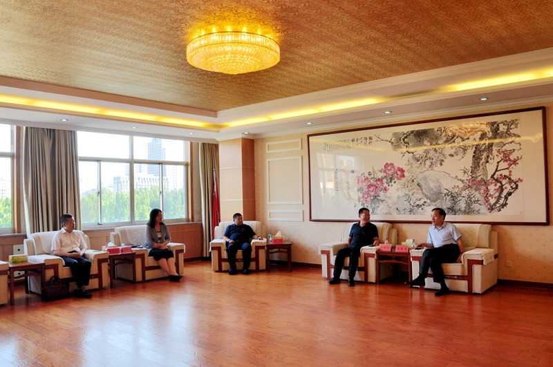 本网讯 6月24日,山东默夙投资集团有限公司董事长杨树仁等一行8人,在我校挂职干部、潍坊市教育局副局长任秀洁和潍坊市产教融合研究院执行院长田元训等人的陪同下,来校交流、考察。学校党委委员、副校长朱猷武会见来宾并进行了座谈。