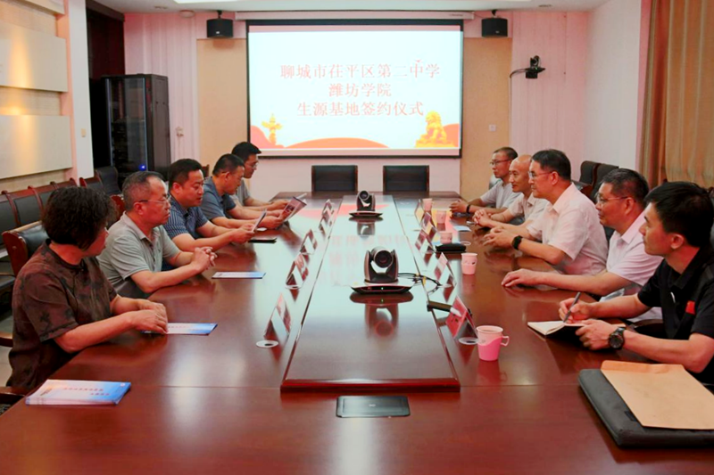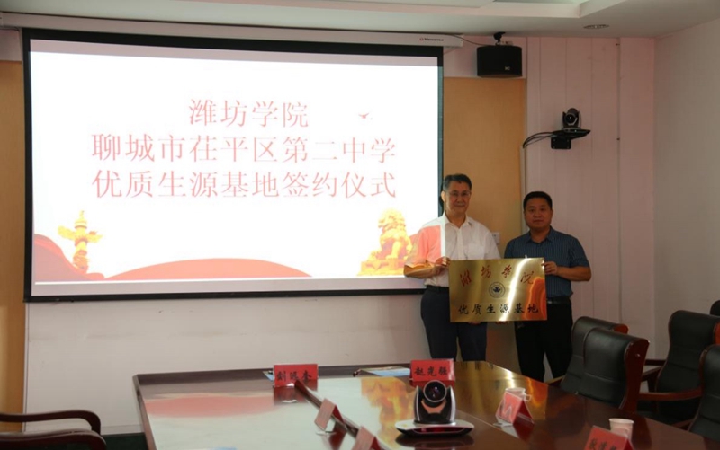 本网讯 6月21日,学校党委委员、副校长赵光强、体育学院班子成员一行4人到山东省聊城市茌平区第二中学签署潍坊学院优质生源基地协议并授牌。