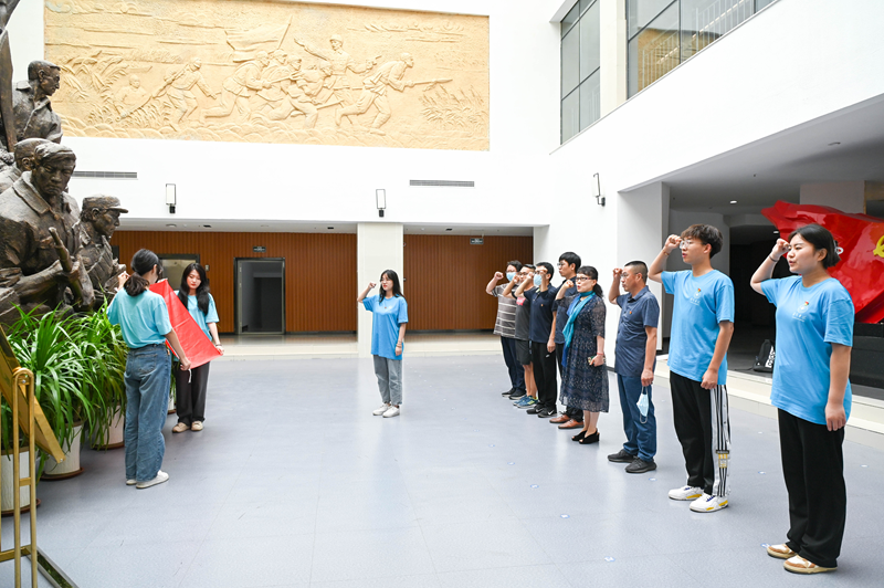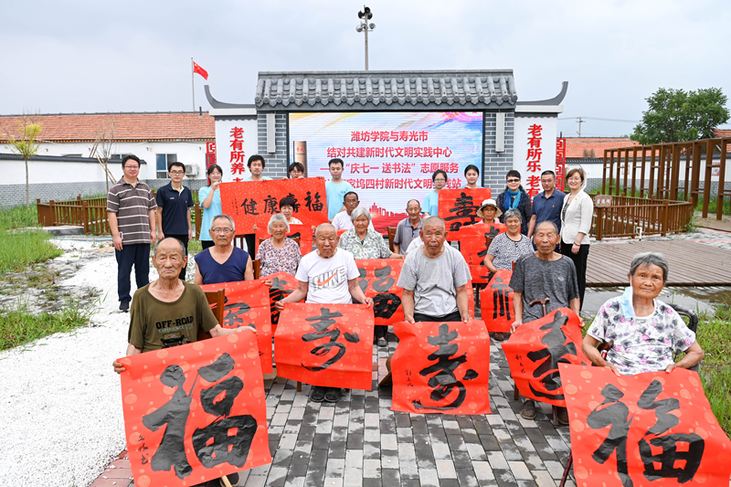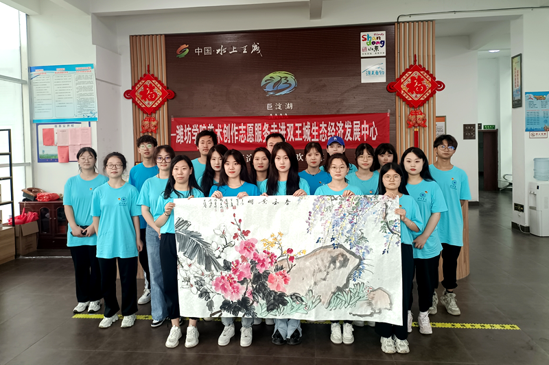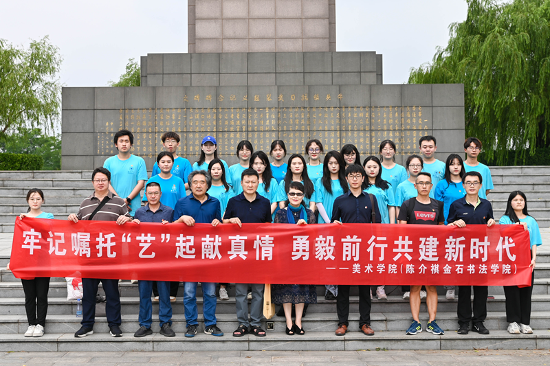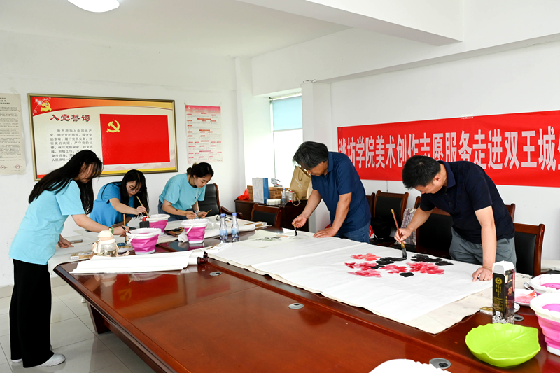 6月29日,潍坊学院美术学院(陈介祺金石书法学院)师生艺术创作志愿服务队赴寿光市开展“牢记嘱托‘艺’起献真情,勇毅前行共建新时代”美术创作志愿服务活动。在寿光市双王城生态经济发展中心和寇家坞四村新时代文明实践站,美术学院的师生们分别开展了国画创作和书法创作,并将国画和书法作品赠送给当地居民。志愿服务活动结束后,美术学院参与志愿服务的师生赴牛头镇抗日武装起义陈列馆进行现场教学,细心聆听讲解,认真观看展品,面对鲜红党旗,全体师生党员高举右拳,重温入党誓词。