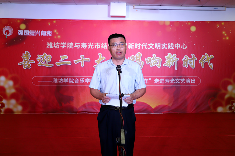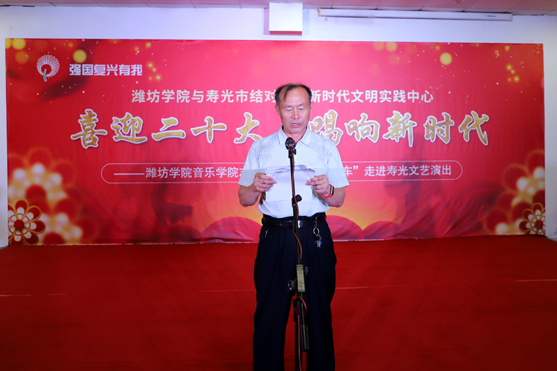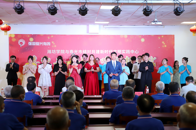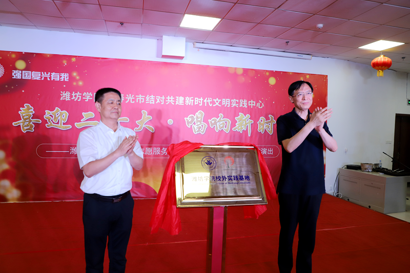 仪式上,潍坊学院党委宣传部相关负责同志发布结对共建新时代文明实践中心活动项目,潍坊学院音乐学院党总支分管负责同志与寿光市民政局党组书记、局长孙荣新共同为“潍坊学院校外实践基地”揭牌。