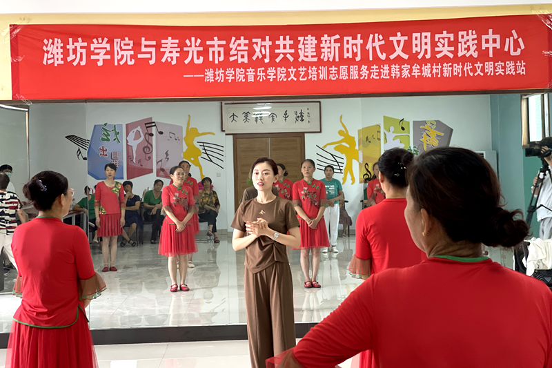 启动仪式结束后,潍坊学院音乐学院志愿服务队“音乐大篷车”走进寿光市“送文化”,开展了以“喜迎二十大·唱响新时代”为主题的文艺演出,为在寿光养老服务集团生活的农村五保户老人们演上精心准备的文艺节目。音乐学院相关教师赴寿光市洛城街道韩家牟城村对新时代文明实践站社区文艺团体进行了艺术培训。演出活动结束后,音乐学院参与志愿服务演出的团员青年学生到寿光市洛城街道屯田西村仓颉汉字艺术馆进行了考察学习。