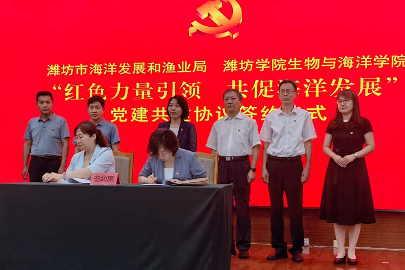 潍坊学院生物与海洋学院与潍坊市海洋发展和渔业局举行“红色力量引领 共促海洋发展”党建共建签约仪式