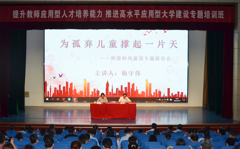 7月4日,学校邀请全国优秀共产党员、“齐鲁时代楷模”、潍坊市儿童福利院副院长杨守伟为我校教师作了题为《为孤弃儿童撑起一片天》的专题报告。杨守伟用真挚的情感和质朴的语言动情讲述了自己22年如一日,无私奉献,无怨无悔,当好孤弃儿童妈妈的感人事迹。杨守伟的事迹,在全校教师中引起强烈反响,他们纷纷表示,这是一次心灵的净化、思想的升华、精神的洗礼,将坚守立德树人初心,不断涵养高尚师德,传播正能量,传授专业的理论知识和超高技术,努力成为学生思想和灵魂的导师。