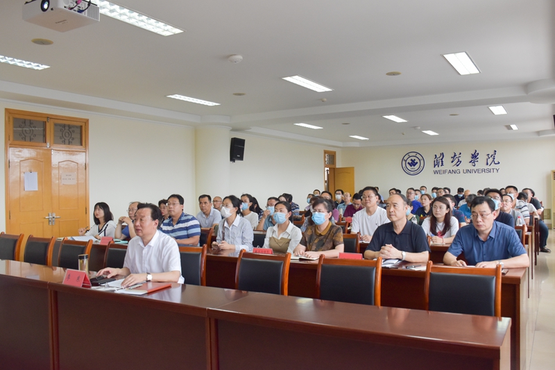 各二级学院院长和教师代表在主会场、全体教师在分会场聆听了报告。