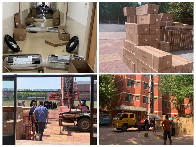 从2022年年初开始,空调正式进入安装阶段。在确保疫情防控绝对安全的情况下,施工方陆续入驻学校开始施工。学生公寓空调安装工作领导小组一周一次调度会,协调各方施工进度,解决工作进展过程中遇到的问题。经过各方不懈努力,5月31日,安顺校区554台空调完工送电进入试运行阶段。6月10日主校区大部分工作完成,6月15日通过了国家电网潍坊供电公司的验收,于6月16日一次送电成功,全校学生公寓的空调全部进入正常运行阶段。目前运行状态良好,项目组正在进行后续的相关完善工作。