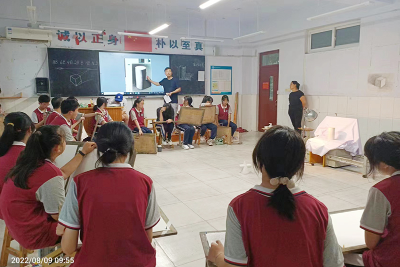 前期,根据疫情防控形势,我校教师采取线上教学的方式,为学生们开设书法和声乐课程,在两所学校设立教学实践基地。本次暑假期间,在临朐县教体局的协调下,我校美术学院和音乐学院负责同志及专业骨干教师放弃假期休息的时间,为暑期托管的孩子们进行了两期、每期各10天的艺术指导活动。开设书法、绘画、声乐、舞蹈、中考美术音乐辅导课程,共计授课720学时,同时为学生提供全部学习用品和器材,组织专业教师创作艺术作品,服务校园文化建设。活动以点及面, 辐射带动周边10 所以上的 中小学校。
