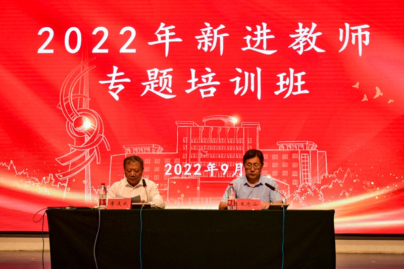 本网讯 9月25日下午,我校2022年新进教师专题培训班顺利结业。党委委员、组织部部长李连成出席结业式并作总结讲话。人事处(人才工作办公室)负责人主持结业式,全校2022年新进教师参加了结业式。