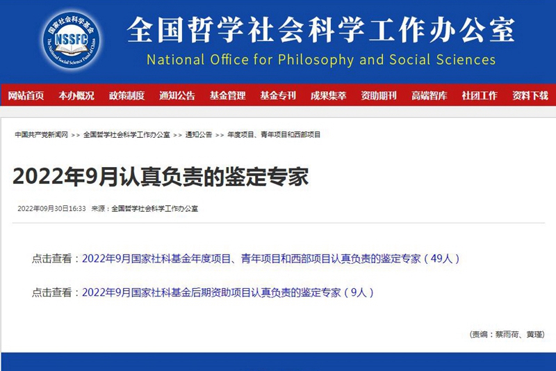 全国哲学社会科学工作办公室严把国家社科基金项目的出口关,为提高广大鉴定专家的责任意识,保证鉴定工作的客观性和公正性,建立了“鉴定专家信誉档案制度”,并每月公布“认真负责的鉴定专家”信誉榜名单。对于认真负责的鉴定专家,将记入信誉良好专家档案。据悉,在9月份的国家社科基金后期资助项目中,全国共有9位专家入选“认真负责的鉴定专家名单”。
