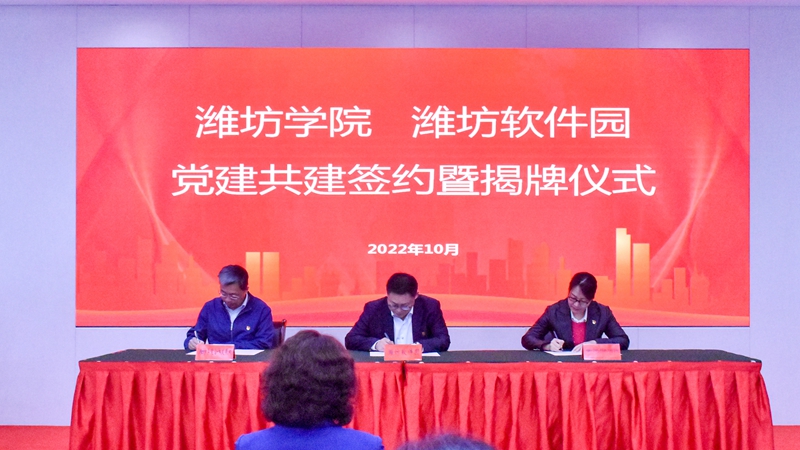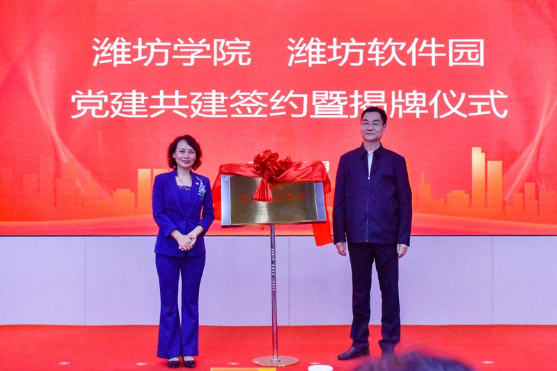 本网讯 10月12日,我校与潍坊软件园在潍坊软件园服务中心举行党建共建签约揭牌仪式,学校党委副书记徐梅,党委委员、组织部部长李连成,潍坊市高新区党工委委员段守华出席仪式。