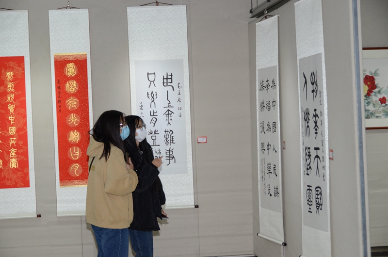 肖建华在致辞中指出,希望通过书画展这个学习交流平台,以书画为媒、用翰墨结缘,在交流艺术、增进友谊中凝聚力量、促进发展,创作出更好更多的艺术精品,共同迎接党的二十大胜利召开。美术学院副教授张华堂、学生代表张炜卿分别发言。仪式结束后,全体嘉宾和校友代表、师生代表共同参观了展览。