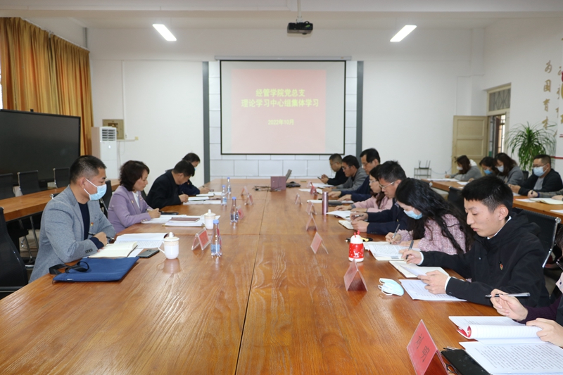 本网讯 10月20日,经济管理学院党总支理论学习中心组进行集体学习,学校党委副书记徐梅,党委宣传部分管负责同志、学校理论学习中心组旁听工作组相关人员列席旁听。