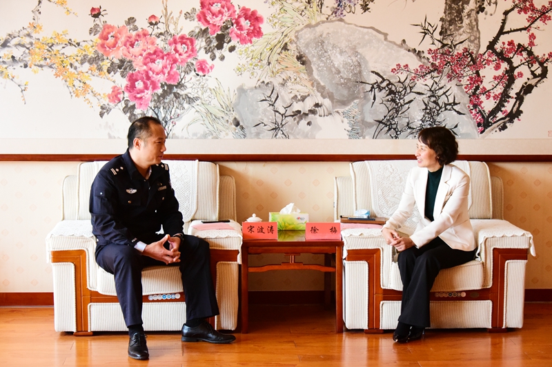 徐梅对宋波涛一行的来访表示欢迎,介绍了我校校园安全稳定、疫情防控与学生毒品预防教育工作等基本情况,并希望今后双方加强交流,共同筑牢师生安全防线。