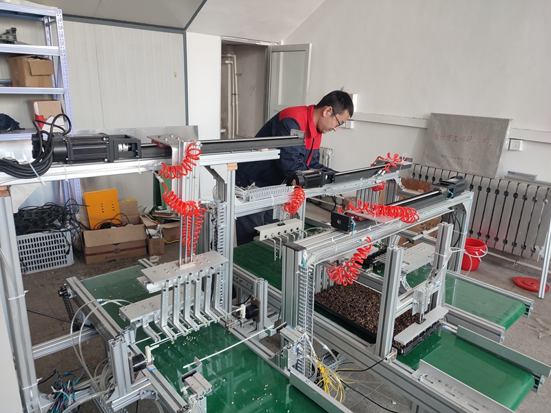 作为科研工作者,李衍军博士在高质量完成教学任务的前提下,持续提高自身科研水平和能力,注重教学和科研的互相促进和并行发展。入职以来,依托于山东省蔬菜种植装备智能化工程实验室、潍坊市智能农业装备技术重点实验室、潍坊市蔬菜种植智能装备工程研究中心、潍坊市蔬菜生产装备智能化工程技术研究中心等高水平研究平台,他主持了山东省重点研发计划(重大科技创新工程)“特色蔬菜高效生产装备研发”项目子课题1项、服务潍坊区域发展的“植物工厂智能化移栽机开发与应用”横向课题1项。目前,李衍军博士及其项目团队已先后开发了播种机智能控制系统和蔬菜嫁接智能识别算法,并研制了气吸双排针式育苗播种机和供苗、切削、插接、排苗等多功能联合作业插接式嫁接装置,提高了育苗播种机工作效率与适应性以及蔬菜嫁接效率和成功率。同时,团队结合潍坊当地发展需求,进一步针对大棚蔬菜的种植特点,研制了一种智能化小型蔬菜移栽机,以实现成果转化,将科研成果真正地运用到农户的种植方面,服务乡村振兴,让老百姓得到实惠。他认为,个人发展能够融入社会发展的大潮中,是身处在这个伟大时代的光荣。