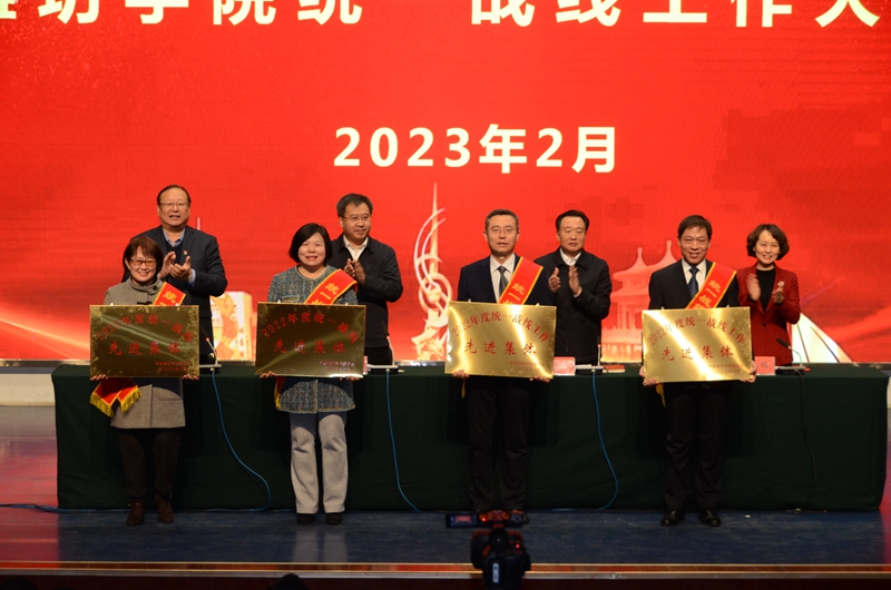 本网讯 2月10日,学校召开统一战线工作大会,学习贯彻党的二十大精神,贯彻落实习近平总书记关于做好新时代党的统一战线工作的重要思想,传达落实全国、全省统战部长会议精神,总结上年度统战工作成绩,部署新年度工作任务,表彰年度统一战线(工作)先进集体先进个人。市委统战部副部长刘世海到会指导,学校党委书记李东讲话,校长冯滨鲁主持,党委副书记徐梅传达全国、全省统战部长会议精神并宣读表彰决定,其他党委领导班子成员出席大会。