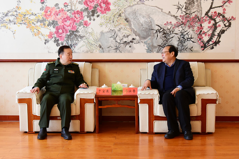 冯滨鲁对于宝东一行的到来表示热烈欢迎,他介绍了学校基本概况和近年来学校在党建和思想政治工作、思政学科专业建设、人才培养、国防教育、服务地方等方面取得的成效,重点就深化国防教育改革、完善思政育人体系、加强双方交流合作进行了深入探讨。他表示,潍坊军分区国防教育资源丰富,目前学校正处于转型发展、高质量发展的关键时期,希望双方在创新学生思政教育、丰富国防教育形式等方面实现军校联动共建,融合提升。