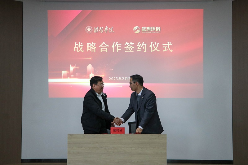 双方围绕科技成果转化、人才培养与共享、专业共建、学生就业实习、管理咨询服务等进行了深入沟通。会上,学校与山东蓝想环境科技股份有限公司签署了校企战略合作协议。
